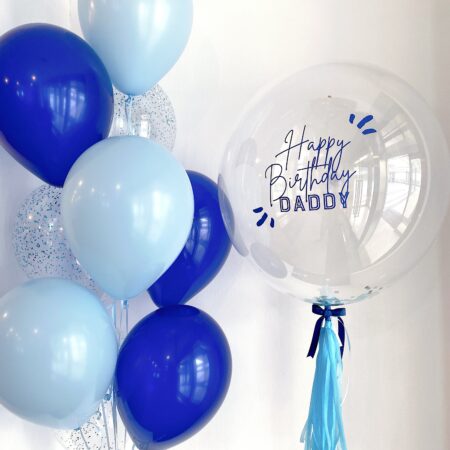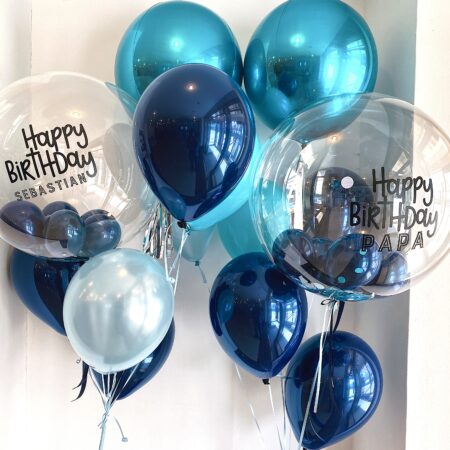 This gorgeous set is perfect for a special occasion for a loved one. It comes with 3 large 24 inch bubble balloons, 12 x 11 inch latex balloons, a metallic 16 inch orb and a heart shaped balloon. This set is delivered straight to you /your loved one helium inflated on 5 stands.