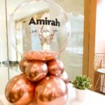 This beautiful long lasting bouquet comes with 1extra large 30 inch air inflated bubble with either confetti, mini balloons or feathers and a double layer base of balloons for extra height.  Order this Bubble with  helium inflated latex balloons to get the party started! Available in preferred colours and customization