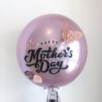 A single customized rose gold orb balloon with a foil butterfly. This balloon comes helium inflated on a stand.